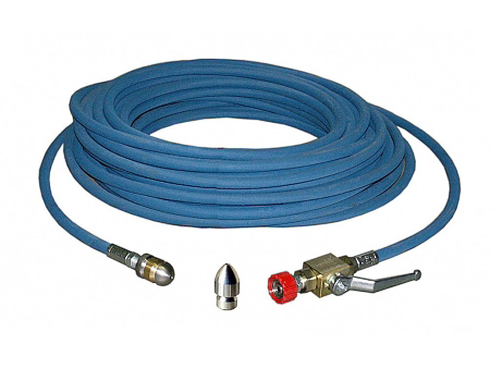 Комплект для прочистки труб с краном и 2-мя форсунками 33 м. Рабочее давление 500 бар.