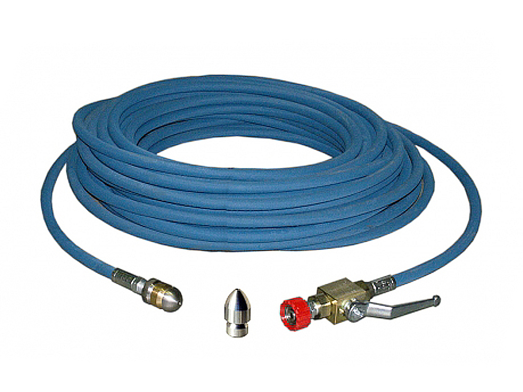 Комплект для прочистки труб с краном и 2-мя форсунками 53 м. Рабочее давление 500 бар.